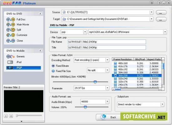 1. 3 DVD to Mobile copy mode available: Generic, iPod and PSP. More devices support can be added manually.